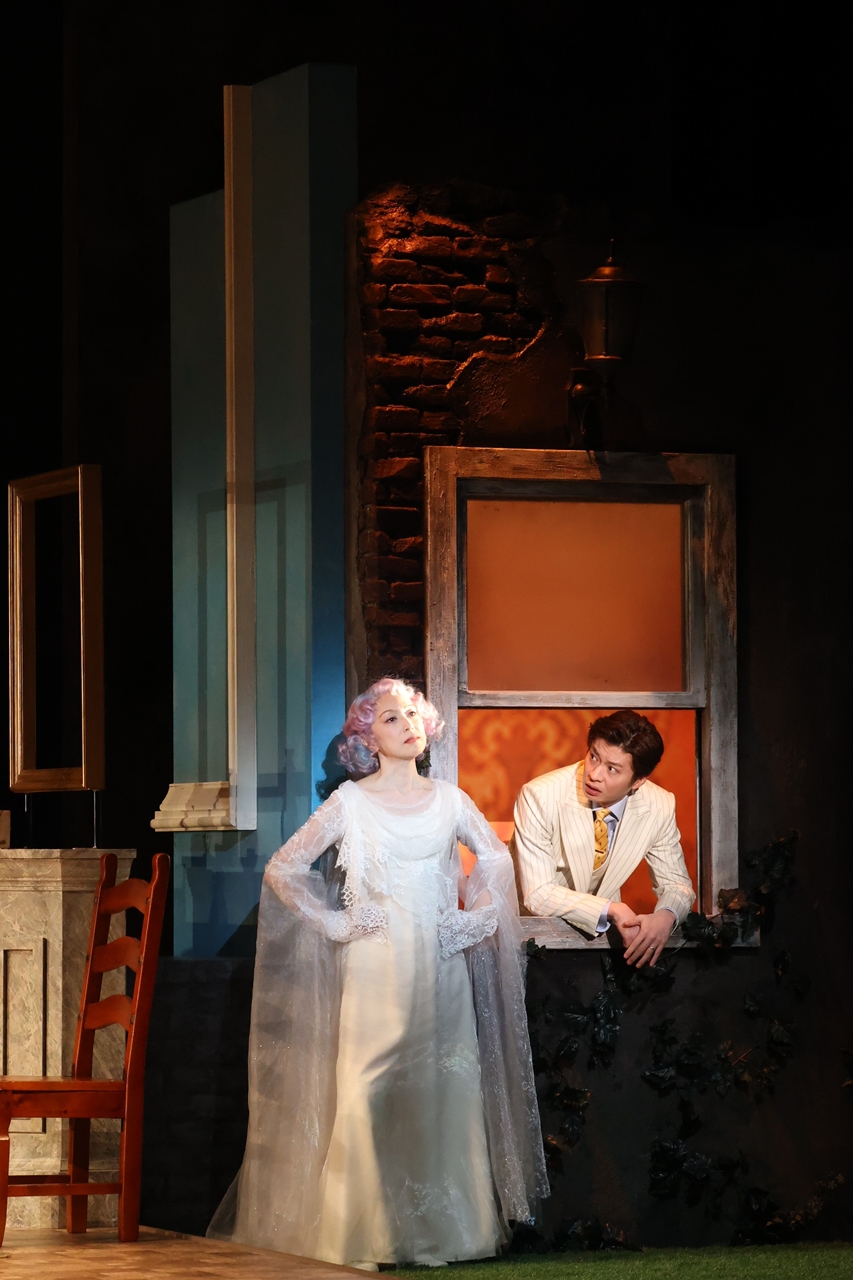 幽霊のエルヴィラは若村麻由美。何と言っても幽霊らしい浮遊感と、圧倒的な美しさが素晴らしく、さらに小悪魔のような奔放さで「魅力的だが頭にくる女性」と称されるエルヴィラを説得力もって体現。チャールズを困らせる迷惑な存在だが、その根底にはチャールズへの愛がしっかりあり、しかしながら好きな男にも媚びないカッコよさも伝わる好演だ。門脇麦は、チャールズに苛立ち常に怒っているようなルースを、ヒステリックではなく自分の主張を正しく通す理知的な女性として構築。門脇自身の個性も重なり、聡明で嫌味のない魅力的なルースになっている。