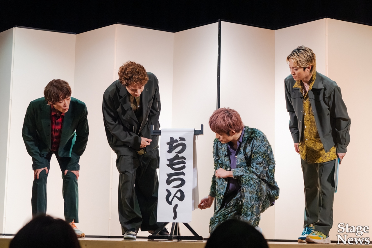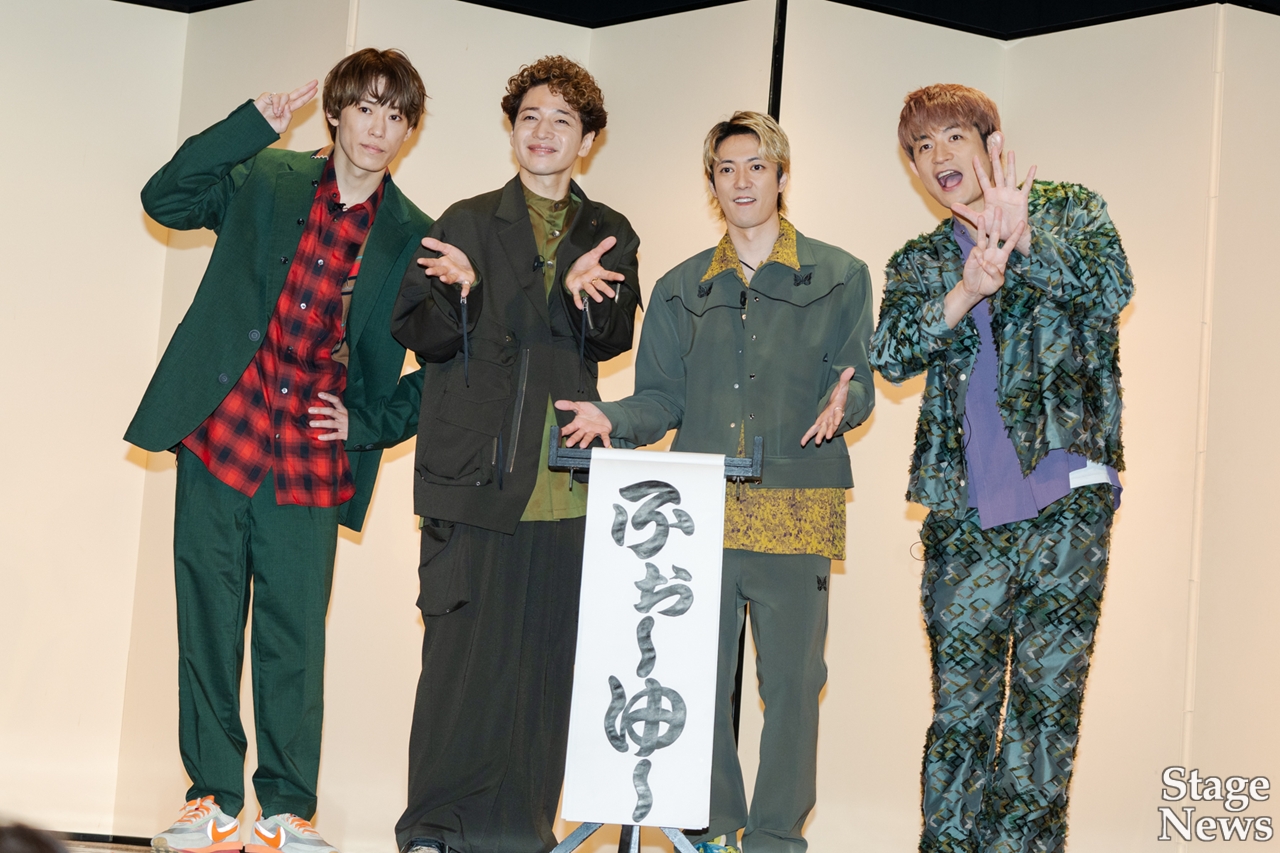 最後に『ENTA!』の“い~”ところ(魅力)について、越岡は「毎回違います。大枠は決まっていますが中身が全然違うので、毎回来ても楽しめます。“楽しみい~”です」と、福田は「集まってくださったおともだちの皆様が“普通にやるなよ”と圧をかけてくるので、僕らがそれに応えていくのが『ENTA!』の“い~”ところですね。いま公演中の「4U. LIVE TOUR 2025 39×4=イイコロ」のような音楽に重きを置いたコンサートもやっていますが、『ENTA!』は完全なエンタメショーなので、全く違った僕らが見られます。39歳を迎え、サンキューの感謝の気持ちをギュッと込めた公演になるよう頑張りますので、ぜひZeppにお越しください!」と、松崎は「おともだちの皆さんと乾杯ができるのが“い~”ところ。人それぞれいろんなことがあるかと思いますが、また来年も頑張ろう!と忘年会のようにその空間を楽しんで、エンターテイメントを通して何かを持ち帰っていただけたら僕らとしても光栄ですし、表現者としてやっていてよかったなと、感無量でございます」と、辰巳は「歌あり、ダンスあり、コントあり、トークあり、お芝居ありの、全てのエンターテイメントを詰め込んだ時間となっています。自分たちがやっているライブとは違っているので、肩ひじ張らずに楽しんでもらえたらと。何が起こるか分からないのが『ENTA!』で、当日その公演にしかない魅力が必ずあるので、ぜひお越しください」とそれぞれ語り、会見を終えた。