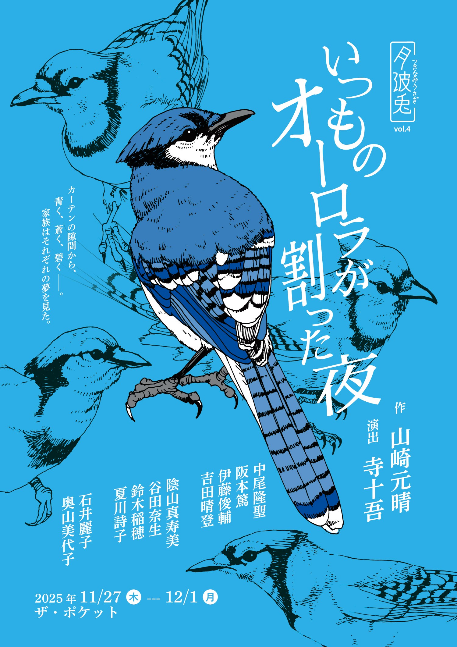 演劇集団・月波兎が、演出に今注目の寺十吾、客演としてネクストブレイク俳優として注目を集める吉田晴登、中尾隆聖等、実力派俳優を迎え、11月27日(木)から12月1日(月)まで、ザ・ポケット(中野)で第4回公演『いつものオーロラが割った夜』を上演。
