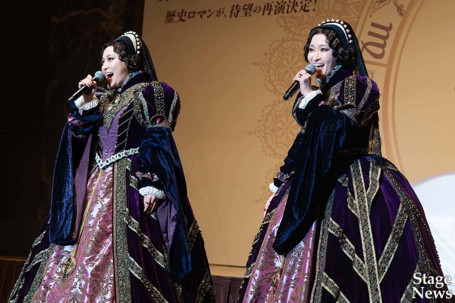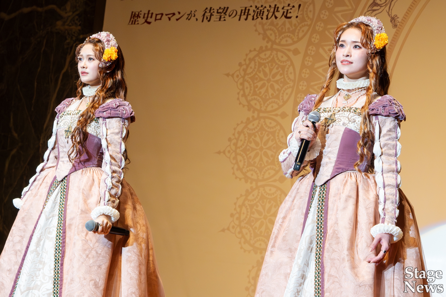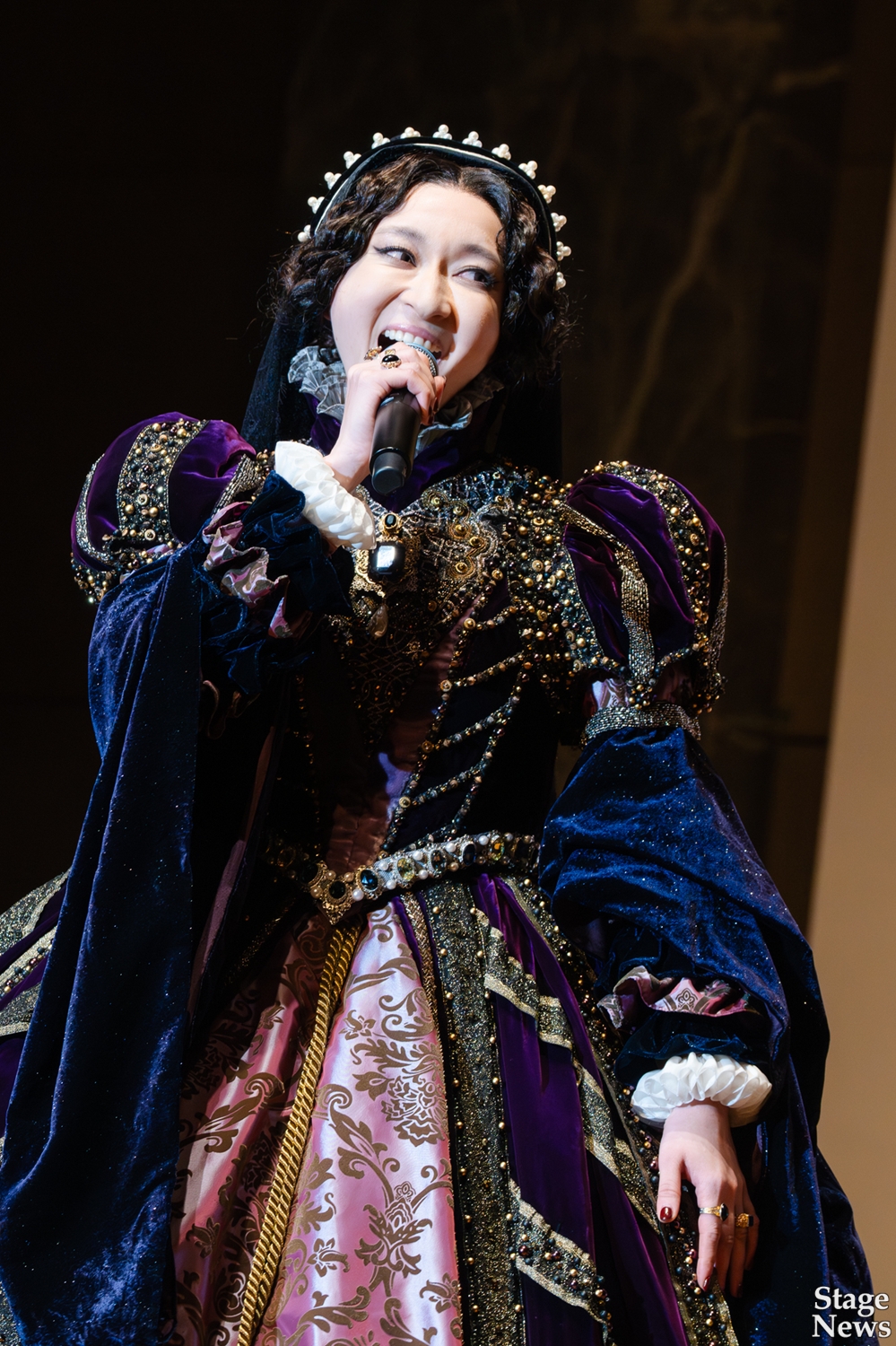 小南満佑子:グランドミュージカルの初主演、初座長ということで、この日を迎えるのが本当に緊張してドキドキしていましたが、こうして皆さんにお披露目することができて嬉しいですし、初演を作り上げたスタッフの皆様や、いつもお世話になっている先輩方が作ってきた作品を引き継ぐかたちで出演させていただけることが、本当に何よりも喜びと感謝の気持ちでいっぱいです。本日たくさんの皆様が集まってくださり、いかにこの作品が多くの方の心に響き愛されているのかを改めて感じております。今回出演のお話を頂いたとき、エリザベス女王という人物を知ろうと思い、書籍や映画などでできるだけ勉強しました。本当に波乱万丈な人生を送られていて、私に務まるだろうかという不安もございましたが、学んでいくうちに、この人の人生を生きたいと強く願ったのが印象的でした。デビューしてからいろんな作品を通して、スタッフの方に支えてもらい、先輩方に導いていただきました。本当に感謝の気持ちでいっぱいですし、ご縁を繋いでくださった小池先生に感謝していますし、何よりもお客様に恩返しをすることができたらという思いで務めていきたいです。2026年、ミュージカル『レイディ・ベス』を劇場で体感していただけたらと思います。