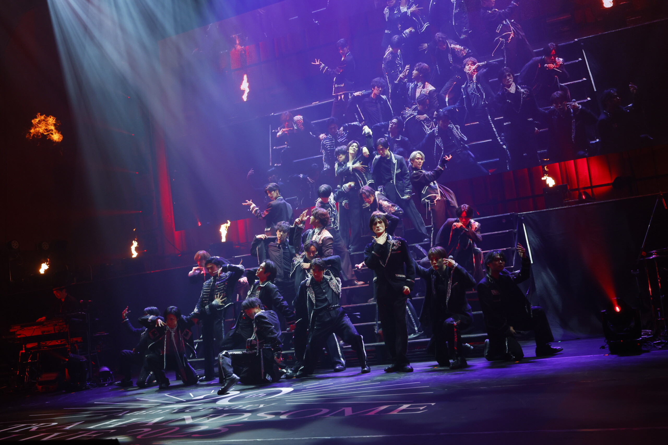 「君だけの HERO」はなんとオリジナル・メンバーでの歌唱が実現!猪塚、松島に歴代ハンサムの風間、栁澤、吉村が加わり、お揃いのつなぎの衣装を着た 5 人は客席からのコールも受けながら、懐かしくもハッピーな瞬間を作り上げた。冬のバラード曲「White Serenade」は、小関と甲斐のボーカルに、青柳、新原、平間、水田がバックダンサーを務め、振付は 2012 年に披露したものをオマージュしたものでパフォーマンス。舞台や映像作品で活躍するメンバーたちが、本気のステージを魅せた。他にも猪塚がキューティーハニーに扮した“イノッティハニー”の復活や、歴代ハンサムの石賀が「振り向いて…トゥナイト」、渡部が「sHi-tai!」に参加するなど、過去と現在が交差した20年の歩みを感じさせるステージとなった。