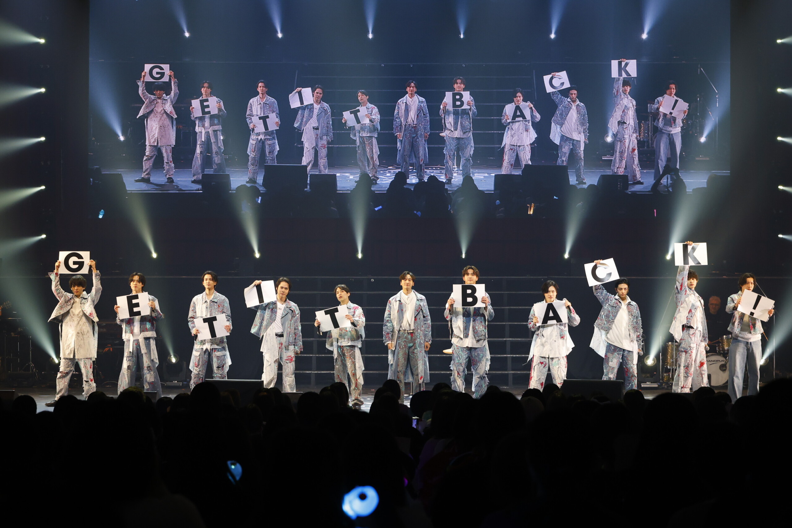 コロナ禍に「自分たちに何かできることはないか?」とメンバー自身が模索し、オンラインでの打ち合わせを重ねながら歌詞を完成させた「GET IT BACK!」は、その時のメンバーである太田、甲斐、小関、新原、兵頭、福崎、細田、松岡、溝口、渡邊と歴代ハンサムの石賀で披露された。歌の前には当時の葛藤を表現する芝居パートも加え、曲としては明るく、前向きなメッセージが詰め込まれたこの歌が生まれるまでのストーリーも伝えながら、笑顔で、ときに叫ぶように歌うメンバーの姿に新たな感動が生まれた。