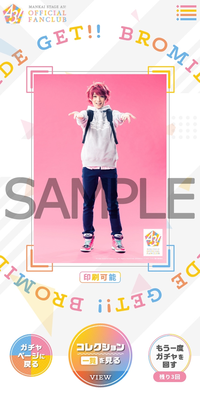※ブロマイドガチャVer.4の実装に伴い2025年3月3日(月)20:00~3月5日(水)9:59までメンテナンスとさせていただきます。取得済みのブロマイドは引き続き「ブロマイドアルバム」でご確認とファミマプリントのご利用が可能です。