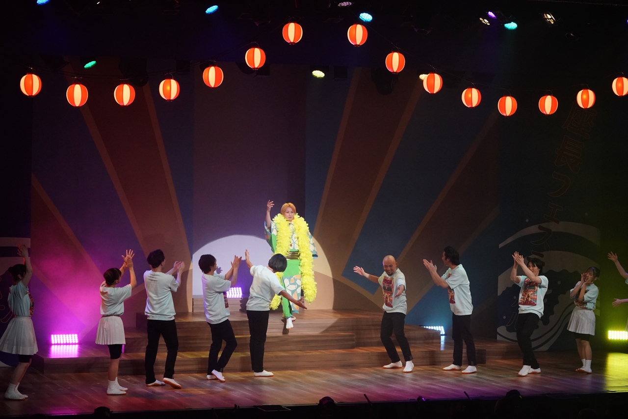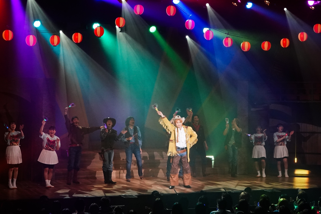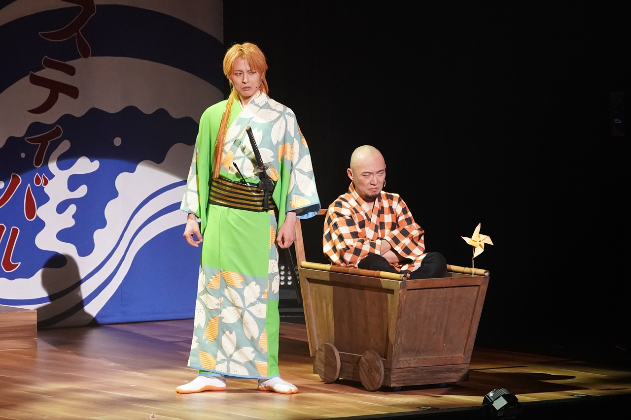時代劇と西部劇の2本立ての短編作品に加え、クイズコーナーやスマホ撮影OKな座長独り占めコーナーなど、観客と一緒に楽しめる構成で、終演後は一座による送り出しもあるなど盛りだくさんな企画でお届け。