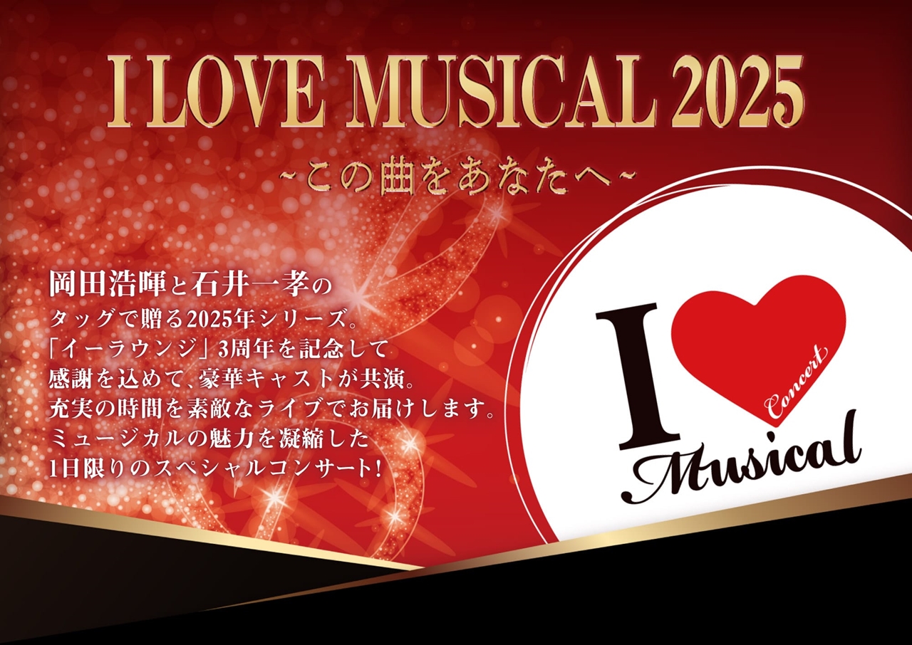 ミュージカルの魅力と心をつなぐ特別な1日——豪華キャストとともに、音楽と想いが響き合うスペシャルライブを、2025年9月6日(土)に岡田浩暉と石井一孝のスペシャルタッグによる「I LOVE MUSICAL」シリーズ2025年版として「I LOVE MUSICAL 2025~この曲をあなたへ~」の上演が決定。