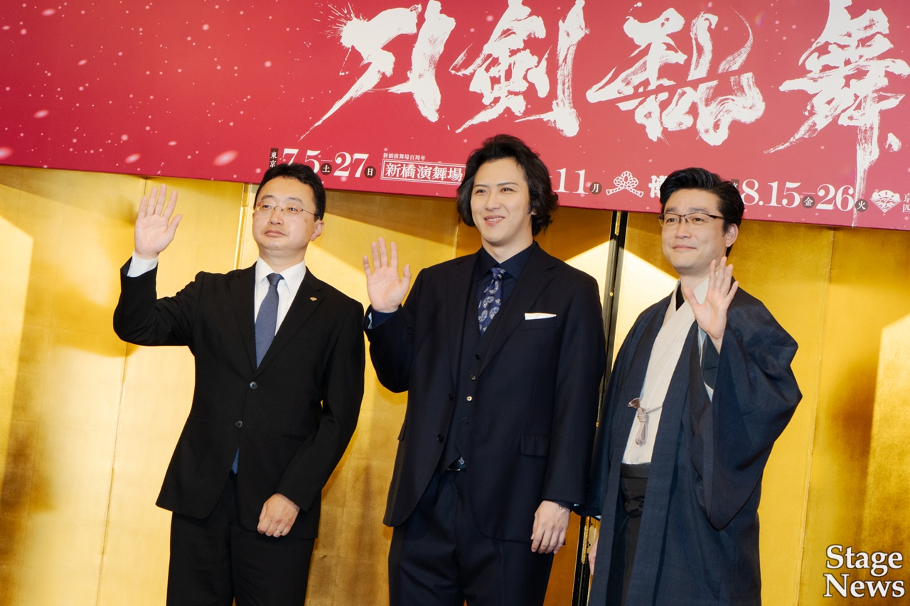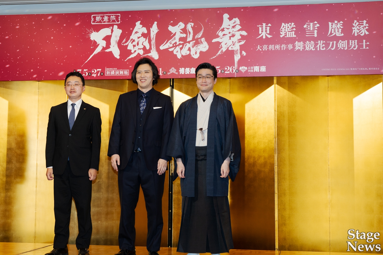 刀剣乱舞歌舞伎 第二弾となる歌舞伎『刀剣乱舞 東鑑雪魔縁』の記者会見が、2025年5月28日(水)に都内にて実施され、尾上松也、尾上菊之丞(演出)、松岡亮(脚本)の3名が登壇した。
