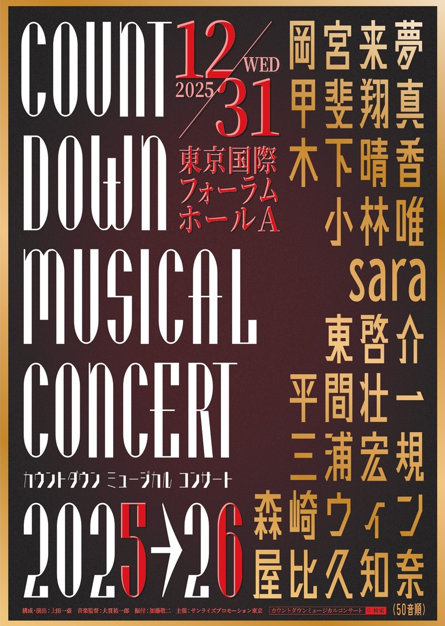 「カウントダウン ミュージカルコンサート 2025-2026」を、2025年12月31日(水)に東京国際フォーラム ホールAにて開催が決定。