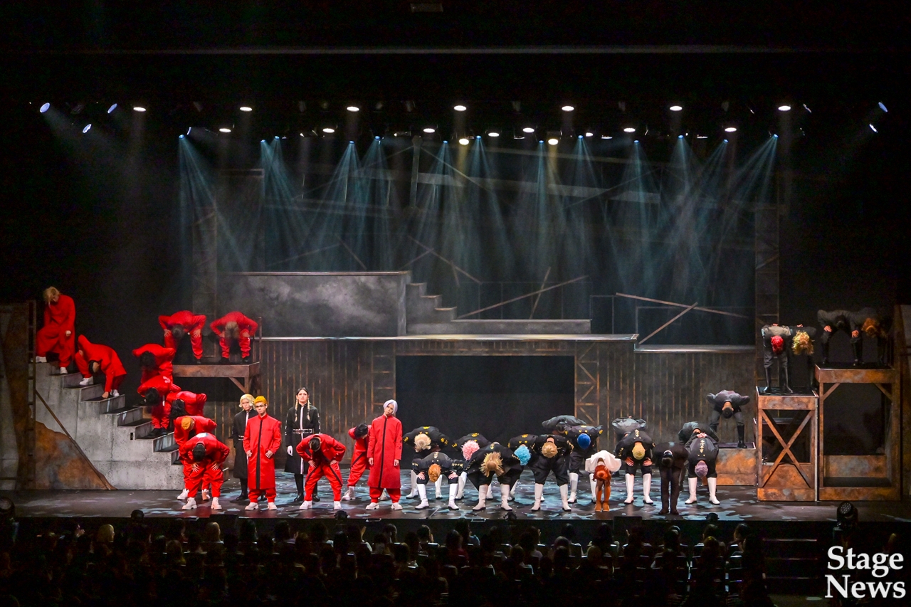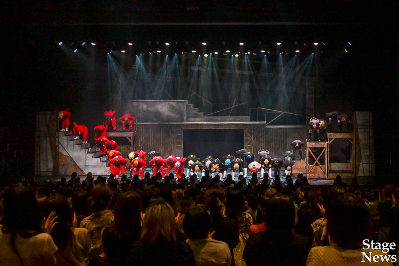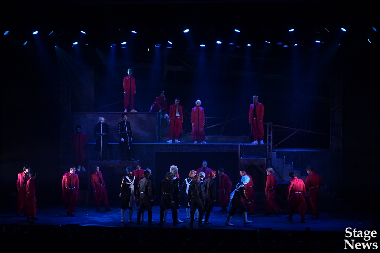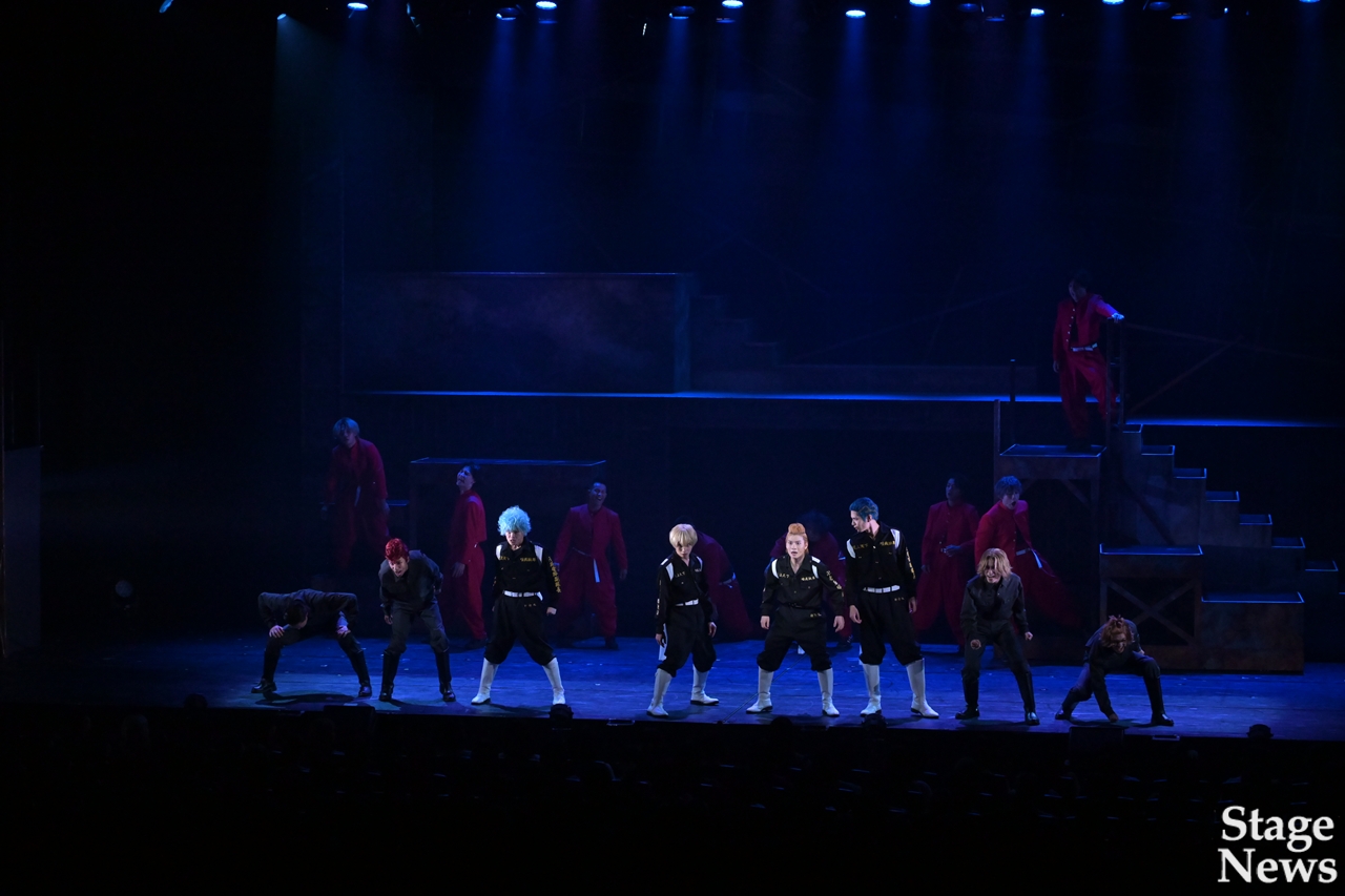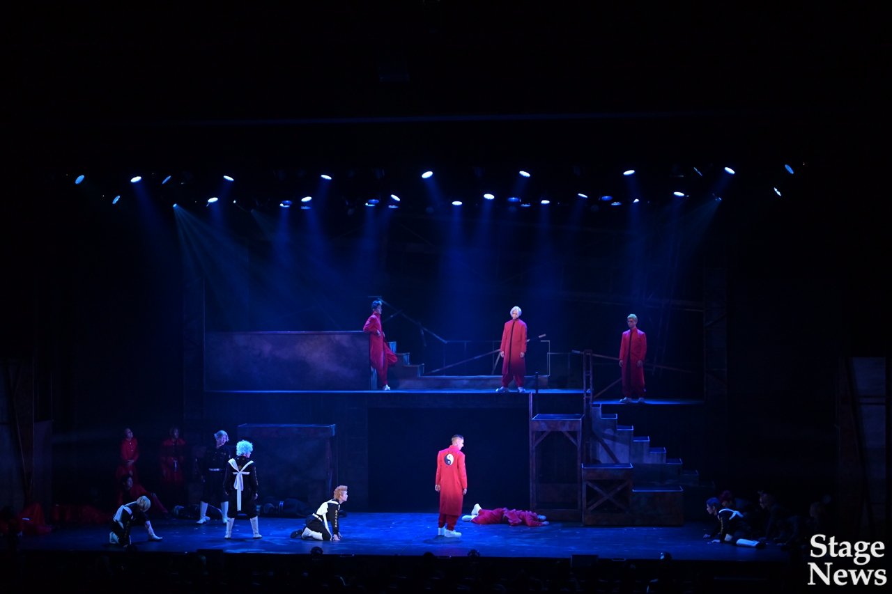 演出家の伊勢直弘が開幕直前のコメントで触れた通り、演出プランの変更もあったというが、全くそれを感じさせず、可動式のセットを活かした場面転換、メインキャストやアンサンブルの全身を使いきる妥協ないアクション、回想を効果的に挟みながら各キャラクターのバックボーンまで丁寧に見せる展開で、揺るぎない世界観に没入できる。