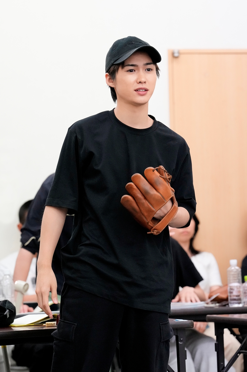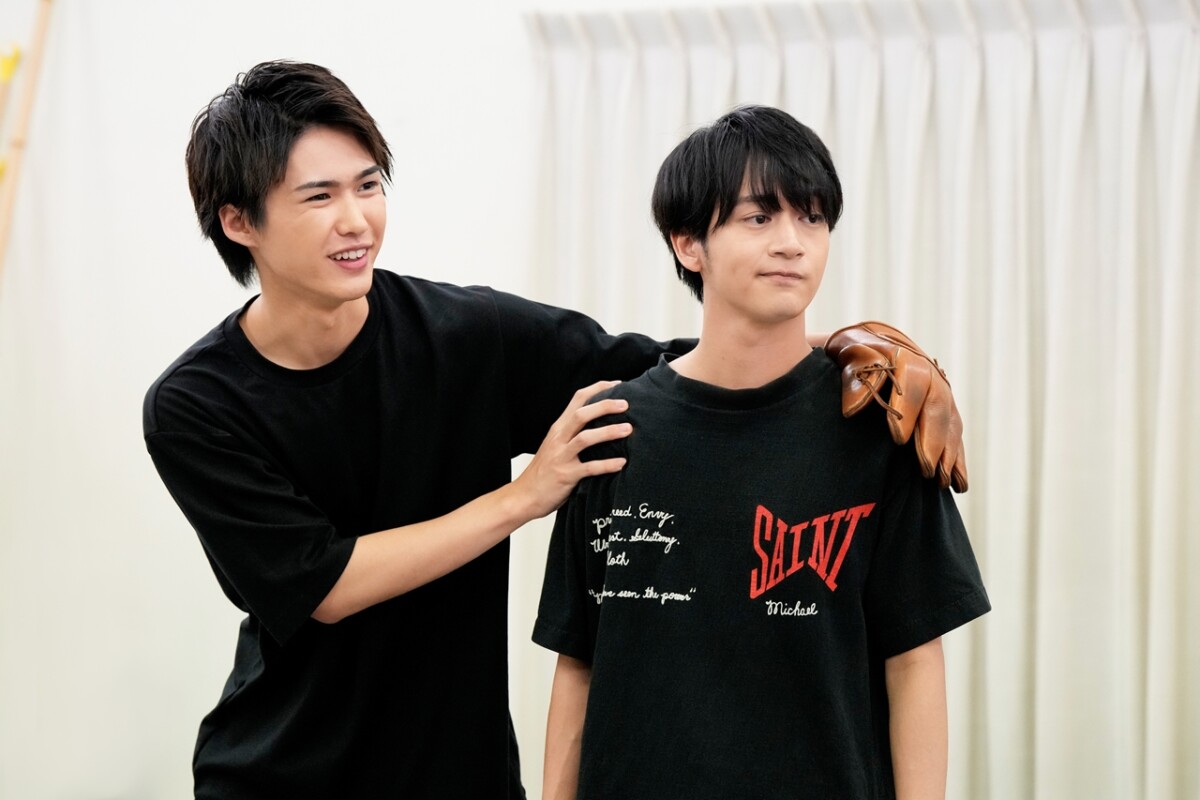 演出の木村は「2人ともどんどん成長していっています。本当にチームワークが良くて、稽古が終わったら毎日みんなで色々アドバイスし合っている」とチームの雰囲気も絶賛。藤井が「今成さんに直接教えていただき、動画で練習方法の解説や宿題もいただいて、それを見て家で練習しました。稽古場では経験者の野球部員役のみんながアドバイスくれて、こたちゃん(岡﨑)もいつも動画を撮ってくれて」と明かすと、岡﨑は「動画撮る係やってます」と笑顔に。藤井は「『江戸実野球部』という(SNS)グループがあるんですけれども、そこに『藤井ちゃんの成長記』を作ってもらっています」と感謝しました。