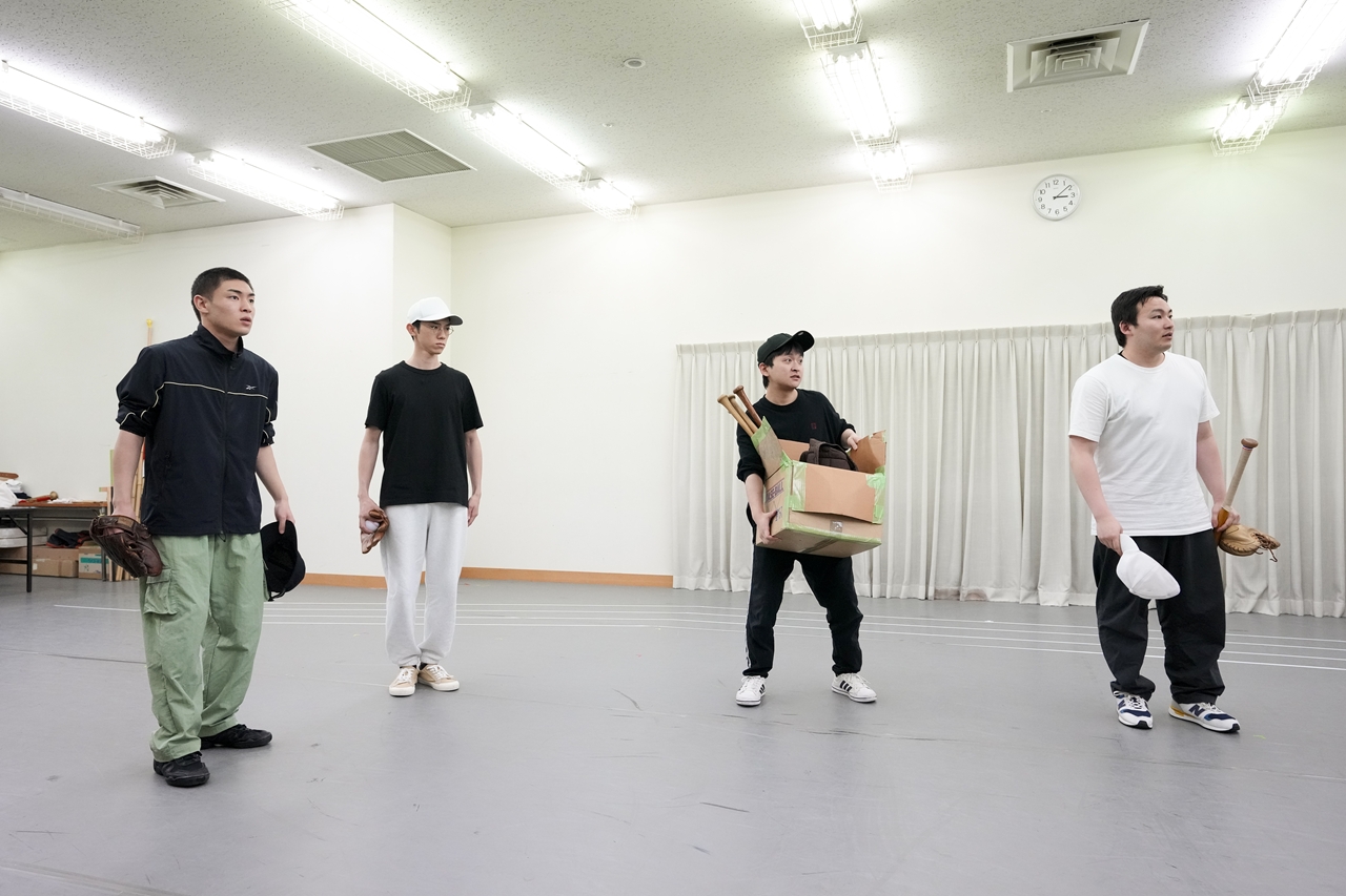 逆に岡﨑は、藤井に対し「座長なのでセリフ量が多くて、すごく向き合ってる」「休憩中にもセリフの練習をしていたり、稽古場に入ったらまずボール投げる練習を始めていたり。努力を僕らに見せてくれているなと思います。それがあるから、僕らも『バット振らないと』と思い出すんです」と、“背中で見せてくれる”座長だと感謝。演出の木村は「真摯に台本と向き合っている姿がある」と2人の様子を語り、「2人の掛け合いの芝居が多いんですよ。その時の自分の気持ちが伝わったか、相手の演技もしっかり見てアドバイスしているのを見ると、さすが座長だなっていうところは感じますね」と、藤井の座長ぶりを称賛しました。