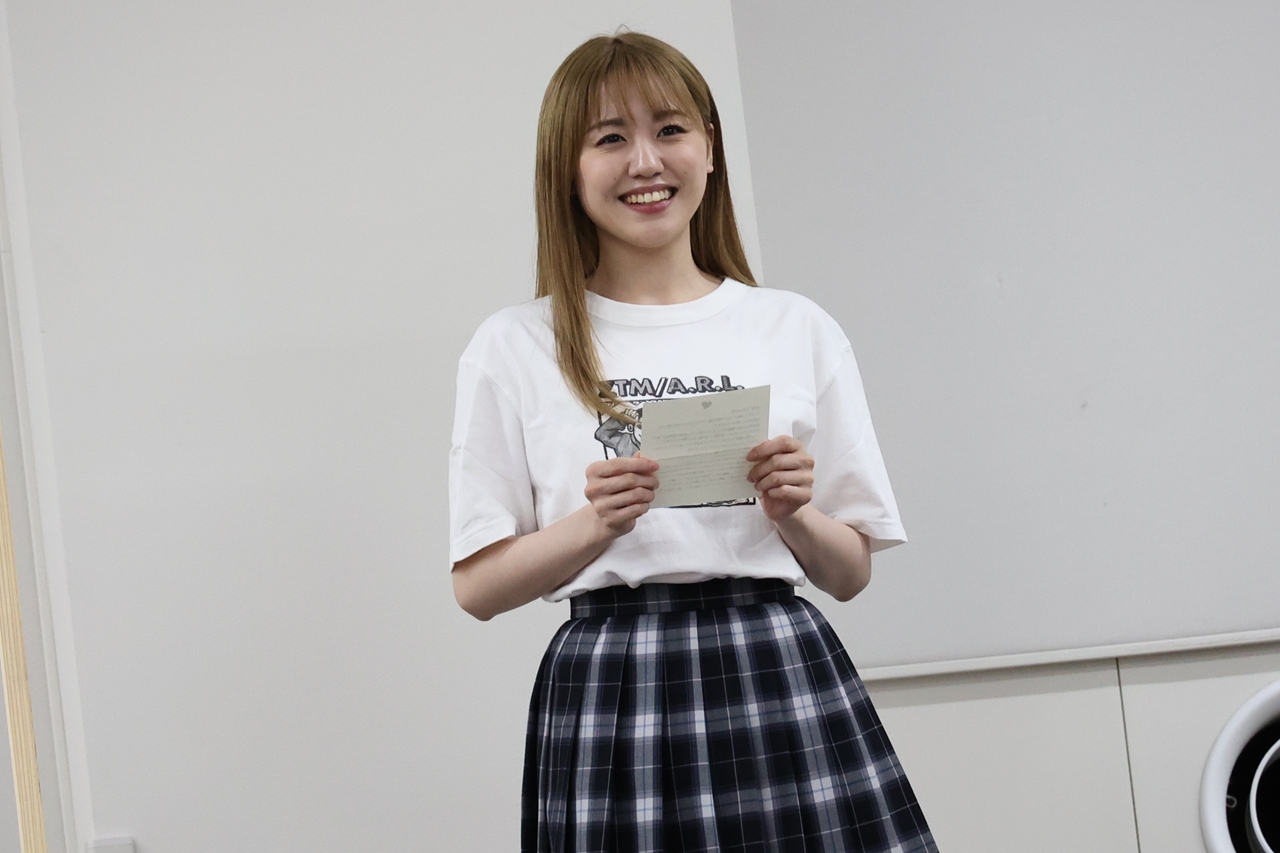 その後、場面ごとの抜き稽古は、東島、宮本、山本、吉原の組み合わせでも行われました。東島の公生は自分の内面と葛藤を積み重ねてきた少年の背景や、心の奥にある複雑な思いを感じさせ、宮本のかをりは天真爛漫のなかにも自分の脆さを奮い立たせているような凛とした強さがあり、周りを惹きつけていきます。通し稽古では涙を浮かべて作品に没入していた山本は、透明感のある清々しい椿に。日々を一所懸命生きている女子高生のひたむきさが舞台に溢れていました。この日が誕生日だった吉原は、稽古の途中で「おめでとう!」と大きな拍手に包まれていたように、まさにみんなの人気者。少し大人びてみんなを見守る、お兄さん的な渡が稽古場を和ませていました。