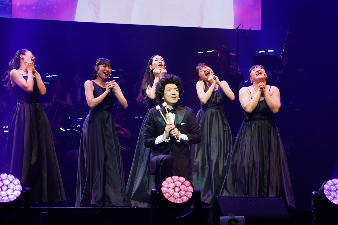 「のだめ」を演じる上野樹里が冒頭に登場すると大歓声に包まれ、ペンライトを使った5,000人での「おなら体操」や、「千秋真一」を演じる三浦宏規がベートーヴェン「交響曲第7番」を指揮する姿、竹中直人が“ミルヒー”としてコール&レスポンスする度に客席が熱狂。