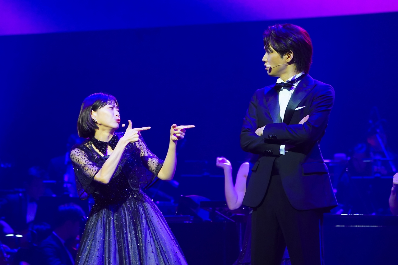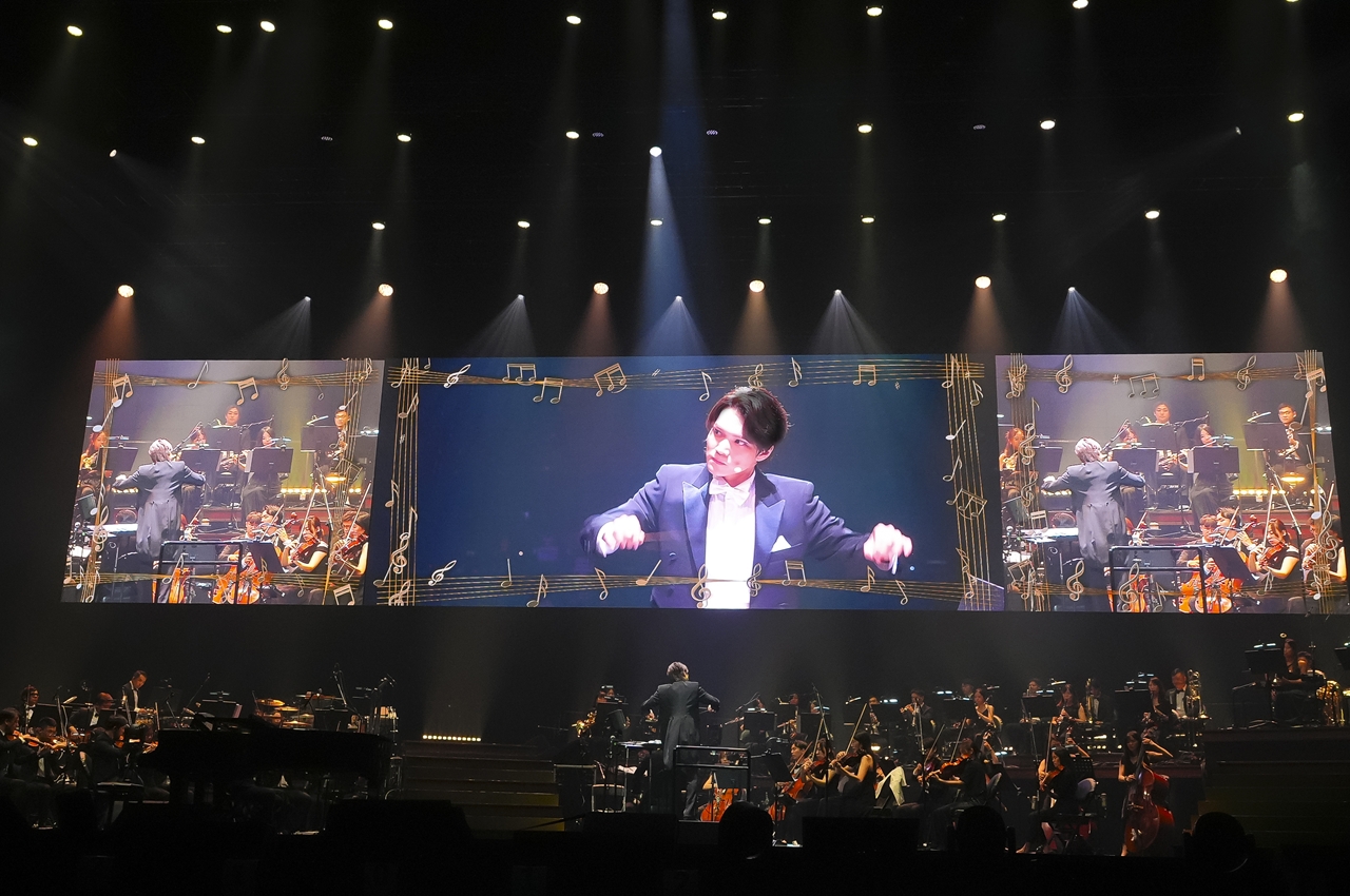 迫力ある大型スクリーンにキャストやオーケストラ、2023年公演や今回撮りおろしの映像等が映し出され、演奏には台北フィルハーモニックシンフォニーオーケストラを迎えました。