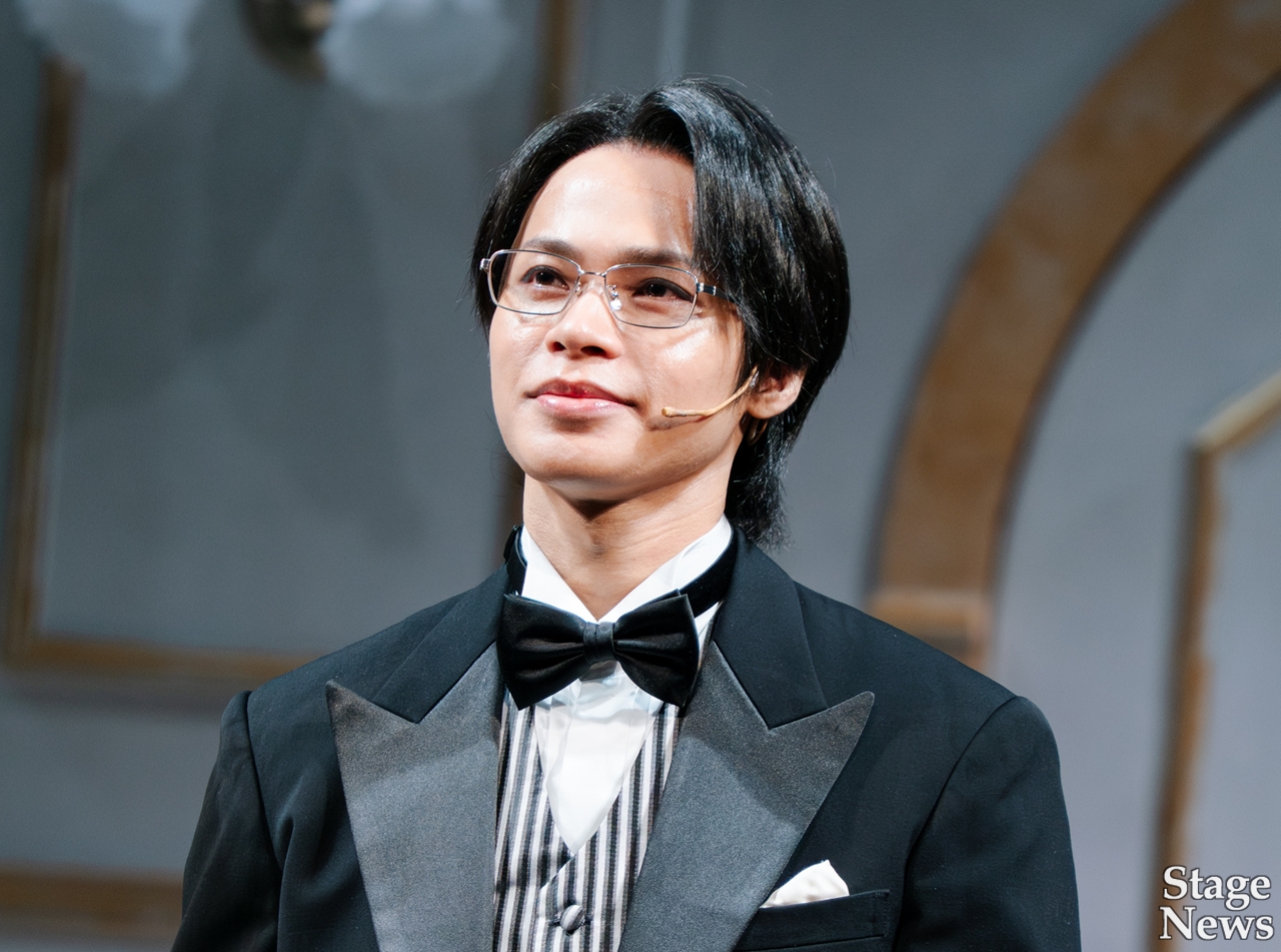 上田竜也:稽古からここまできて、長いようで短いという言葉がピッタリだなと。開幕を迎えて、稽古場の時とは違ったお客さんの笑い方があり、「ここで笑ってくれるんだ」という発見もありました。初日が開けてしまったら終わりまですぐだなという、少し早いですが寂しい気持ちもある、そんな感覚があります。大ヒットした小説が原作ですし、影山役は(櫻井)翔くんが演じていたということで、最初にお話をいただいた時は嬉しくもあり、プレッシャーでもありました。翔くんに影山として大切にしていたことを伺ったら、「キャラクターを作ること」「毒舌ではあるけれど、嫌悪感を抱かれないように気を付けること」と教えていただいたので、稽古でもそれを意識していました。特に執事としての仕草や立ち居振る舞いには苦労しましたが、本職のバトラーに指導をしていただいたおかげで更生したと思います(笑)。謎解きのあるミステリーではありますが、このオリジナル舞台はエンターテイメントに仕上がっています。ぜひ観に来て笑ってストレス発散していただけると嬉しいです。