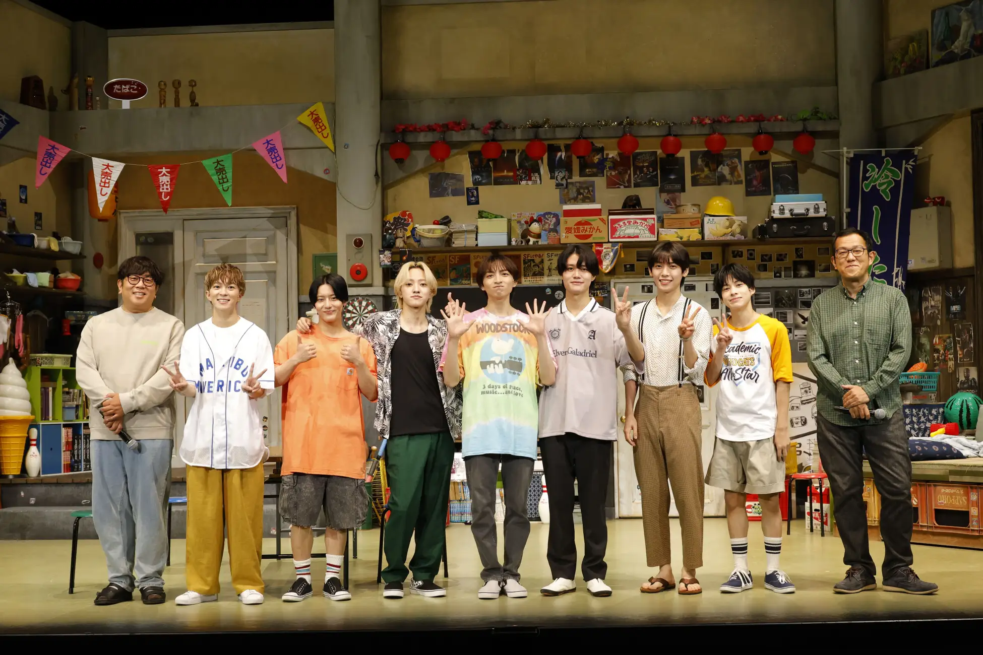 川﨑皇輝、元木湧、安嶋秀生、長瀬結星、大西風雅、阿達慶、髙橋曽良ら東西ジュニアが出演する舞台『サマータイムマシン・ブルース』が2025年10月22日(水)にIMM THEATERで開幕。初日前には、ゲネプロ取材会が行われ、出演者たちと脚本の上田誠、演出の諏訪雅が登壇し、本作への思いを語った。
