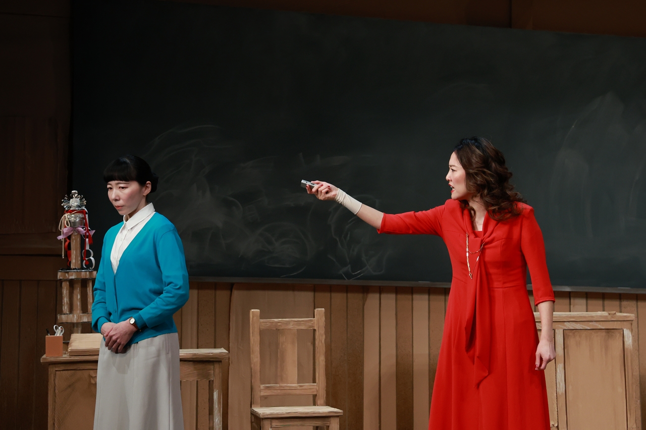 最初はモンスターペアレントという社会問題を含んだ会話劇かと思いきや、途中からサスペンス、謎解きのように話が転がっていくところが秀逸だ。⼩栗が等⾝⼤の現代⼈を舞台で演じることが新鮮で、存分にその魅⼒を発揮。初舞台の菊地はそうは思えない度胸の良さと演技⼒を存分に⾒せつけてくれた。平岩は珍しくおとなしめ、しかし複雑な役どころを⾒事に表現。相島は教頭として振り回され、振り回し、物語をダイナミックに広げてくれた。